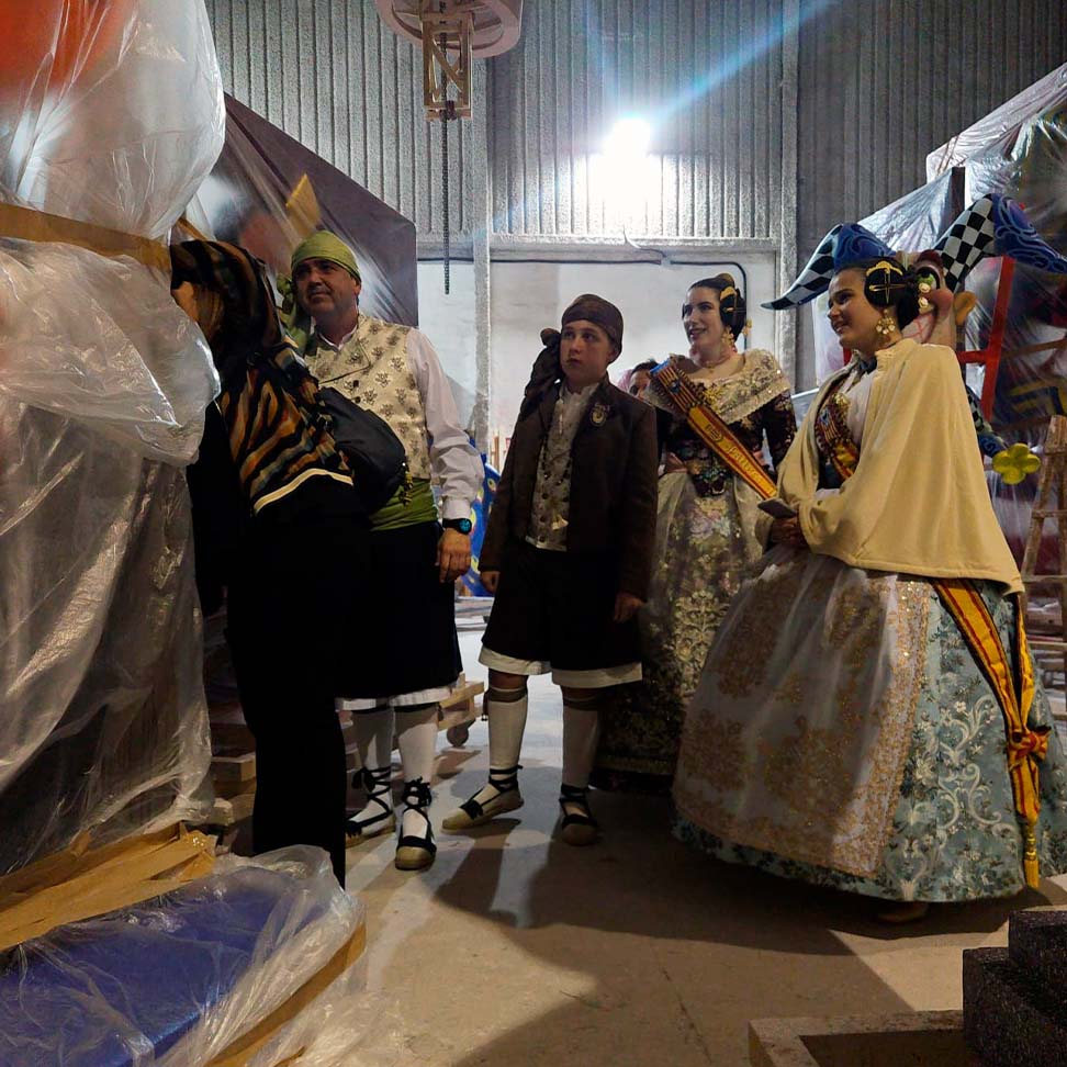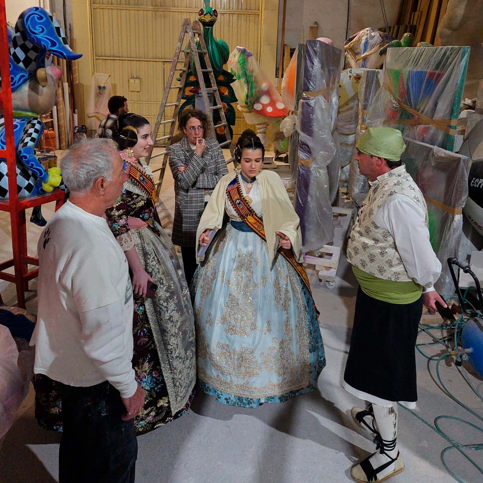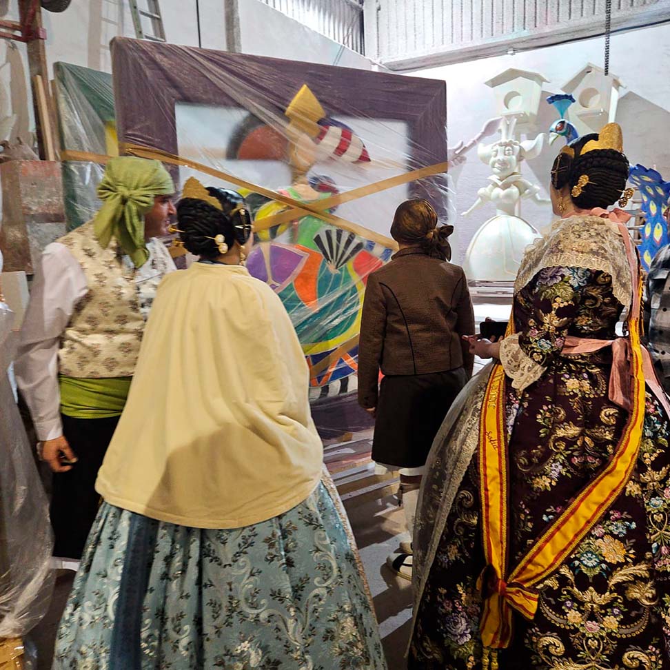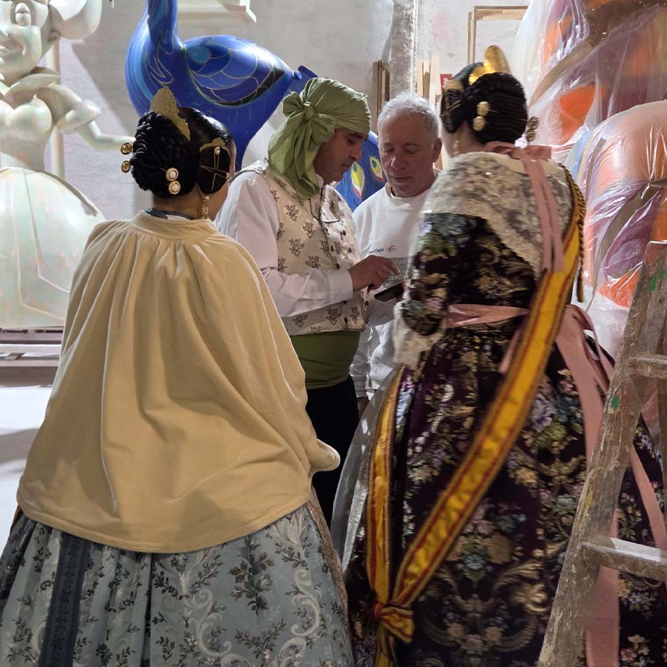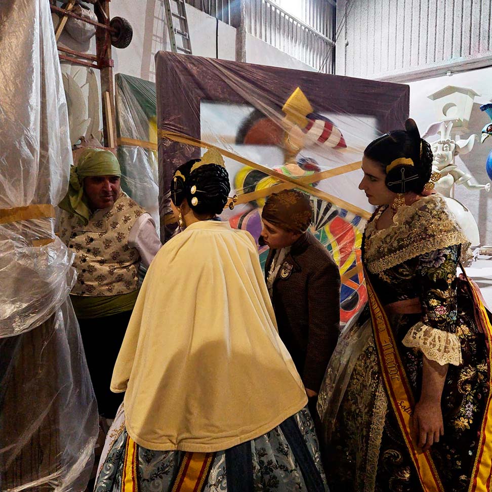 El pasado 7 de febrero, nuestros representantes realizaron una visita privada al taller del artista fallero, donde pudieron ver de primera mano cómo avanzan las fallas que se plantarán este año.