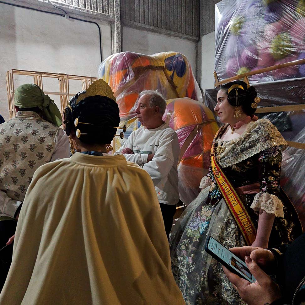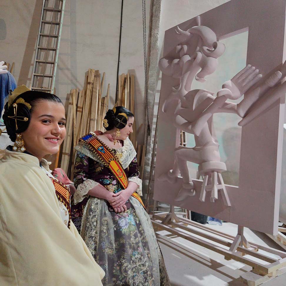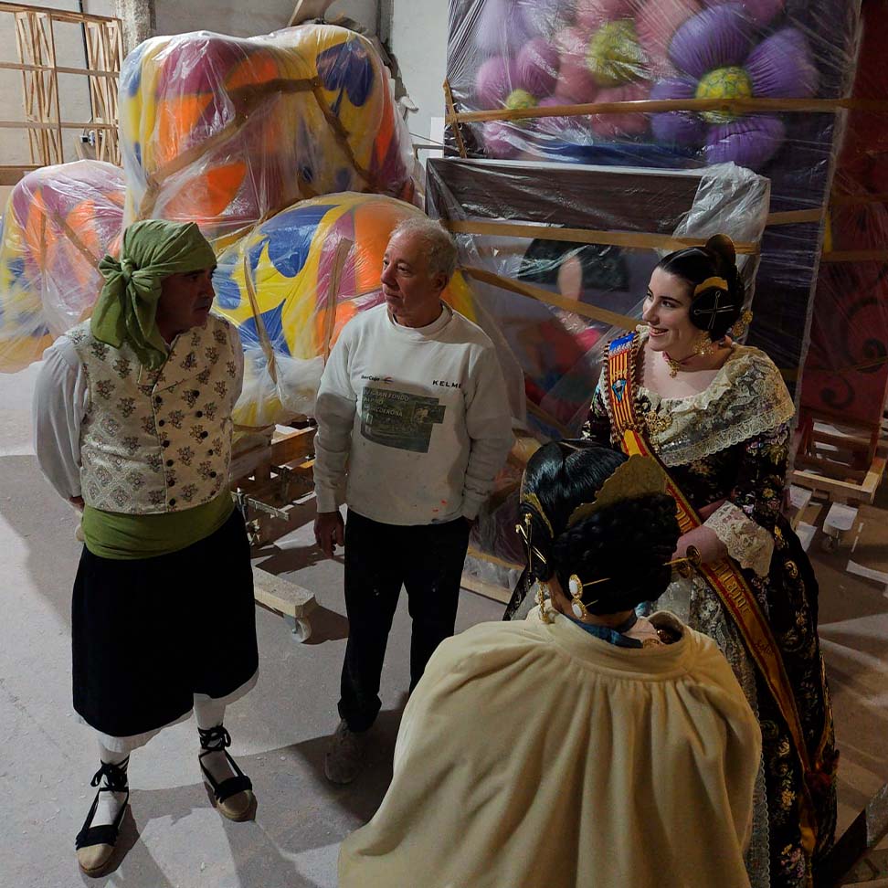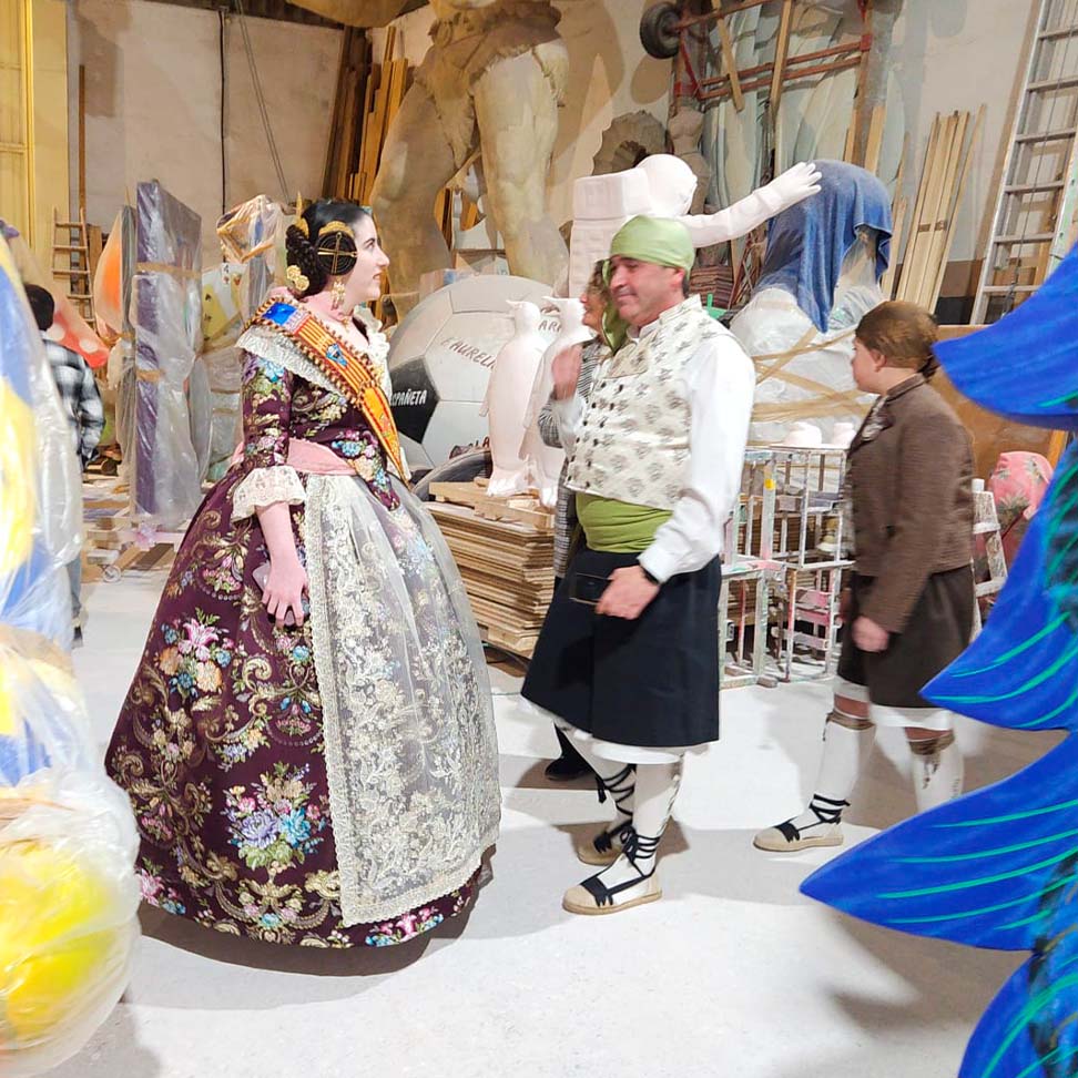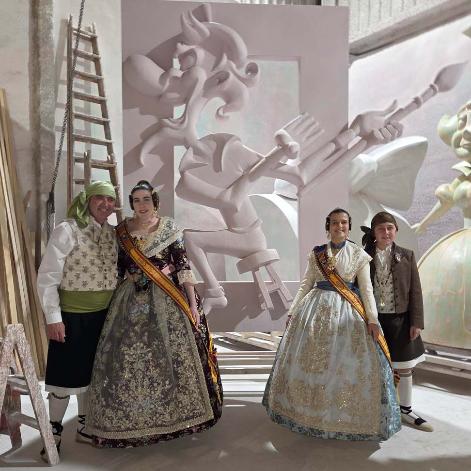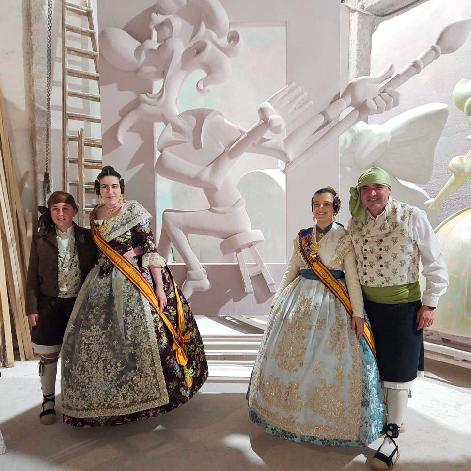 El pasado 7 de febrero, nuestros representantes realizaron una visita privada al taller del artista fallero, donde pudieron ver de primera mano cómo avanzan las fallas que se plantarán este año.